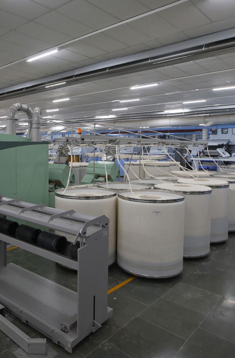 Our integrated manufacturing process spans from cotton bale management to final yarn winding, supported by globally reputed machinery from Trützschler, Rieter, LMW, Savio, Uster, and Premier.